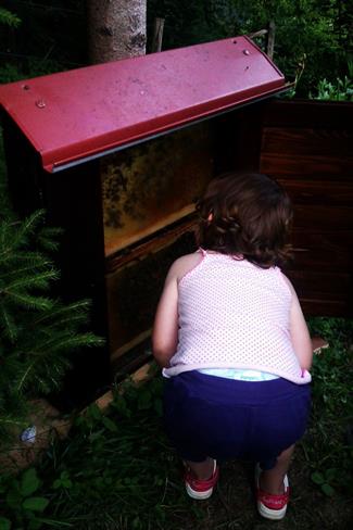 Kranjske sivke (naše čebele so v bistvu sive in ne rumene) so izredno mirne. Ob poletnih večerih jih lahko prijetno božamo. Res edinstven občutek.
