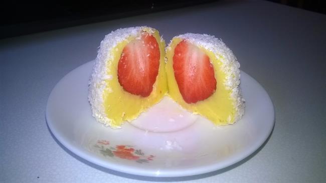 Pripis: jagode potisnite v puding tako, da bo pecelj na vrhu, sladica zgleda lepša (jaz sem jih potisnila narobe).
